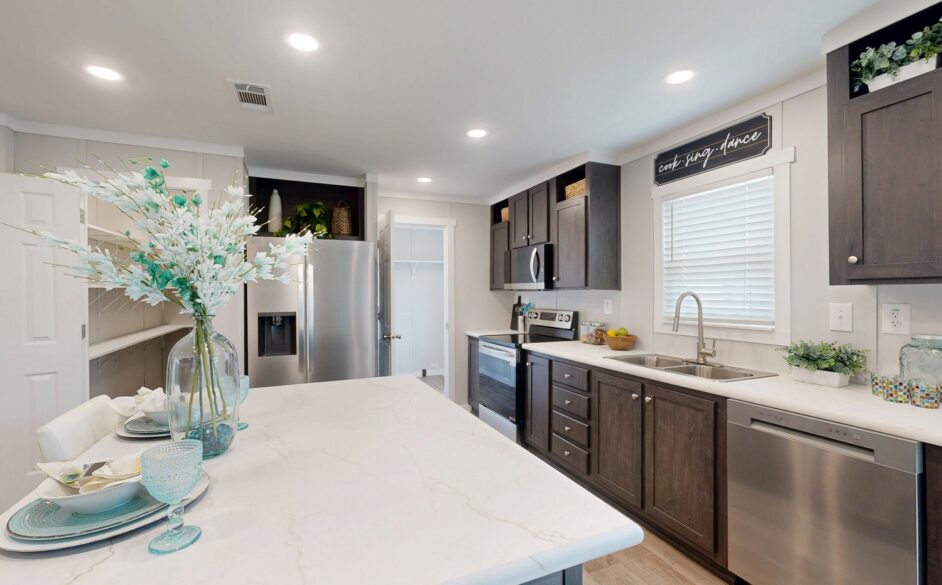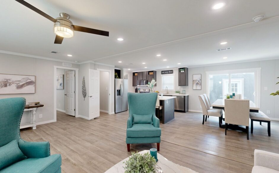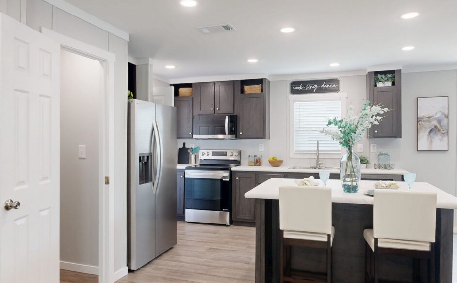 Grand Mesa — New Floorplan for Big (or Growing) Families Introducing The Grand Mesa, one of the newest manufactured home floor plans in our popular Acorn Series. This budget-friendly big family home makes homeownership easier than ever. All décor selections are already chosen by our professional design team — so what you see is exactly what you get, with no costly surprises, helping you save thousands. With 5 bedrooms, 3 bathrooms, and a smart layout perfect for large, growing, or multigenerational families, everyone gets their own space — and their own walk-in closet. The kitchen takes center stage with a supersized pantry and premium LG stainless steel appliances that make cooking (and impressing guests) effortless.
